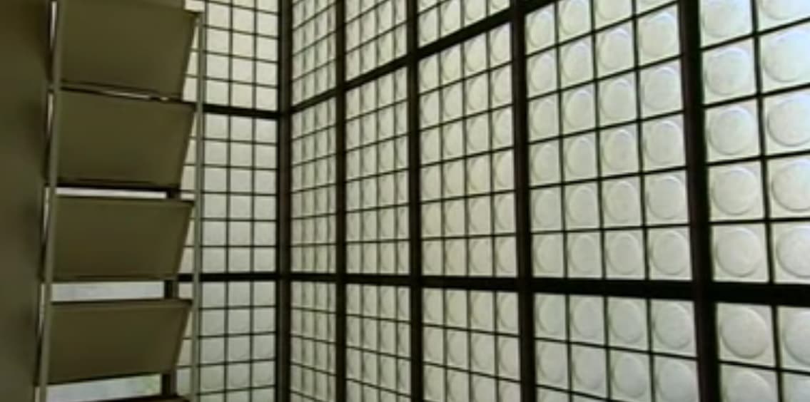 Dans un des très rares textes où il évoque la maison, Chareau se défend d’avoir utilisé le verre pour le verre. Son but, dit-il, était de faire entrer le maximum de lumière à l’intérieur de cette maison, que des fenêtres classiques n’auraient pu éclairer qu’en partie, et la lumière entre. Impossible dans le grand salon d’échapper à l’effet hypnotique de ce diffuseur qu’on a souvent comparé un écran de cinéma, mais qui est aussi un écran tout court, empêchant de voir et d’être vu.